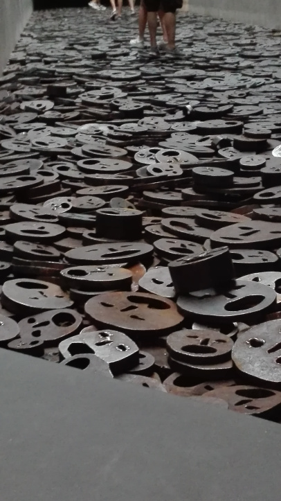 · Le foglie cadute: 10 000 volti in acciaio distribuiti sul pavimento dello Spazio vuoto della Memoria che rappresentano tutte le vittime di guerre e violenze. É possibile calpestare tutti i volti e vi assicuro che il rumore che producono è raccapricciante. Un frastuono stridulo, assordante, un rumore che ti entra nella testa e penetra nell’animo e ti fa desidera di uscire al più presto da quella sala e più ti affretti per andare via più il rumore aumenta. Una melodia di morte e sofferenza che lascia i visitatori increduli. Io ho mosso solo pochi passi, non sono riuscita a calpestare tutti quei volti, non volevo infliggere loro altro dolore, ero come bloccata, volevo proseguire ma i miei piedi erano fermi sui primi due volti incapaci di proseguire. In due minuti mi sono venute in mente duecento mila immagini, quelle che ho visto sui libri o al cinema e l’unica cosa che ho fatto è andare via in silenzio con un groppo pesantissimo in gola.