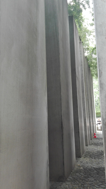 Il giardino dell’esilio: si tratta di un’istallazione composta da 49 colonne di cemento alte sei metri fatte in modo da bloccare la vista dall’esterno. Il numero delle colonne è simbolico, 48 per indicare il 1948, ovvero l’anno della proclamazione dello stato di Israele e la 49esima che all’interno è colma di terra proveniente da Gerusalemme, simboleggia Berlino. Le colonne si trovano su una superficie scoscesa che rende l’intera costruzione alquanto strana. Nel momento in cui mi sono addentrata tra i pilasti ho avvertito un forte senso di smarrimento, capogiri e senso di nausea. Mi sono guardata intorno e mi sono accorta che la maggior parte delle persone provava queste sensazioni, chi più chi meno. Per continuare a camminare dovevo toccare i pilastri e volevo solo fuggire via da quel posto ma qualcosa mi diceva di continuare a girovagare tra quelle colonne. É come se mi trovassi in un universo parallelo, qualcosa che non posso spiegare con le parole, ero fisicamente lì ma il mio corpo era come smarrito. Ovviamente l’inclinazione di sei gradi del piano è stata studiata apposta, per permettere al visitatore di provare lo stesso senso di smarrimento e perdita di equilibrio che gli ebrei provavano nel momento in cui erano costretti a lasciare le loro case, le loro famiglie verso un destino che purtroppo oggi conosciamo molto bene.